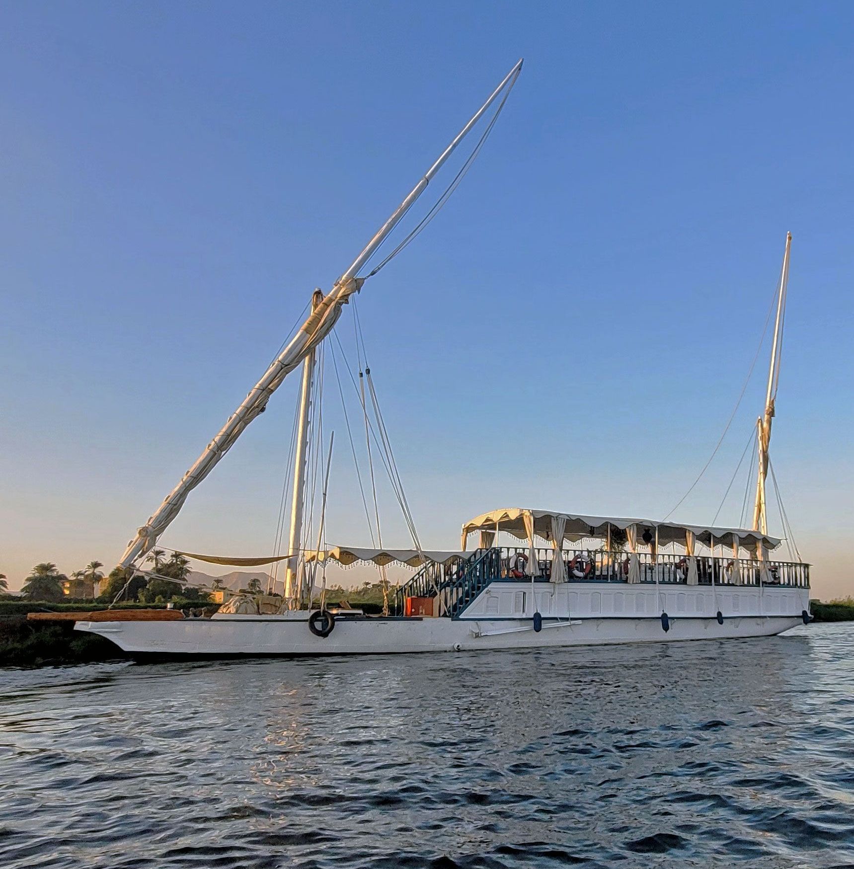 Discover the wonders of the Nile River on a private cruise on the exclusive Dahabiya Kingfisher. This original Dahabiya, built in 1899, has been renovated with elegant décor and modern amenities to offer you a luxurious and comfortable sailing experience.